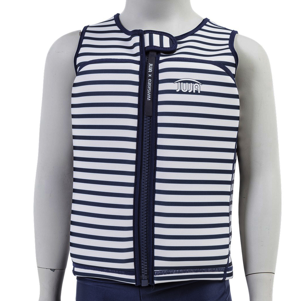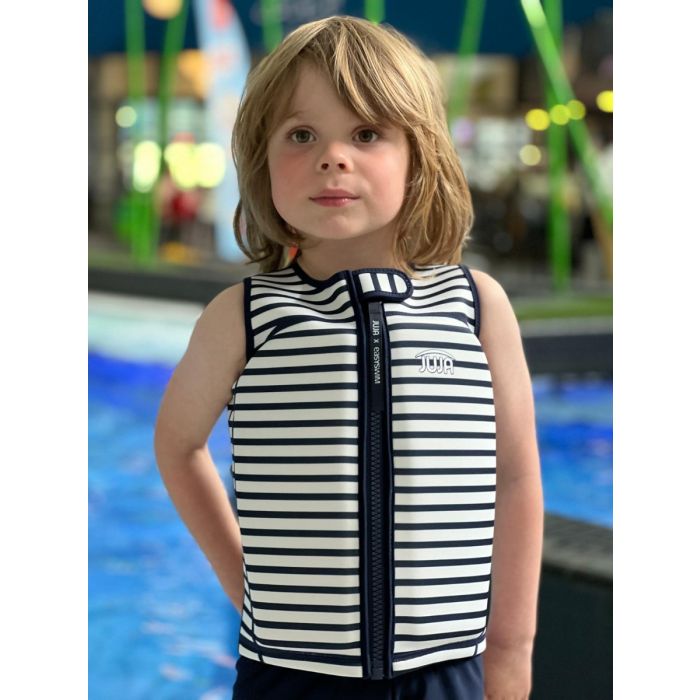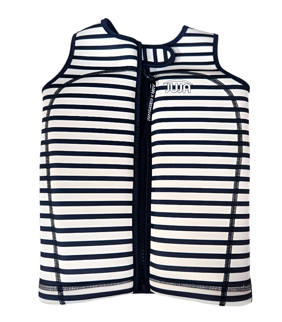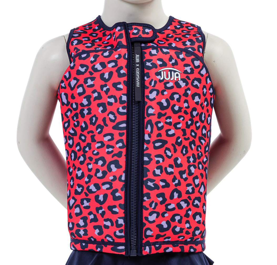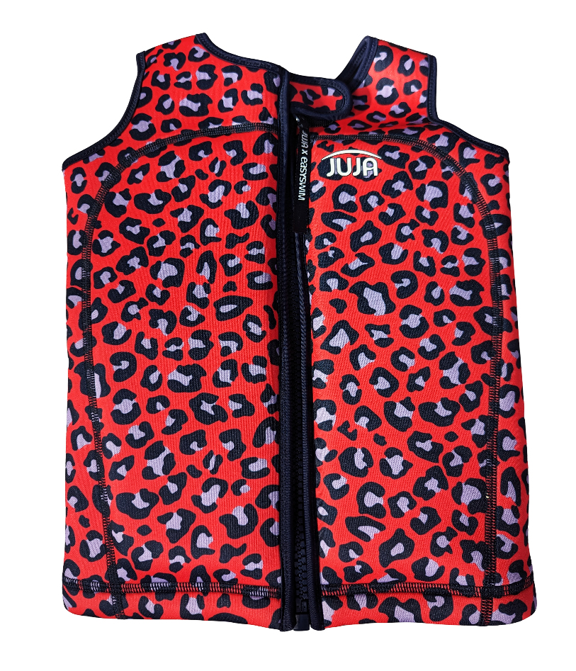 In samenwerking met JUJA zijn er twee limited edition zwemvesten ontwikkeld met de kenmerkende JUJA patronen: wit/blauw gestreepte navy print en een rood-paarse luipaard print.